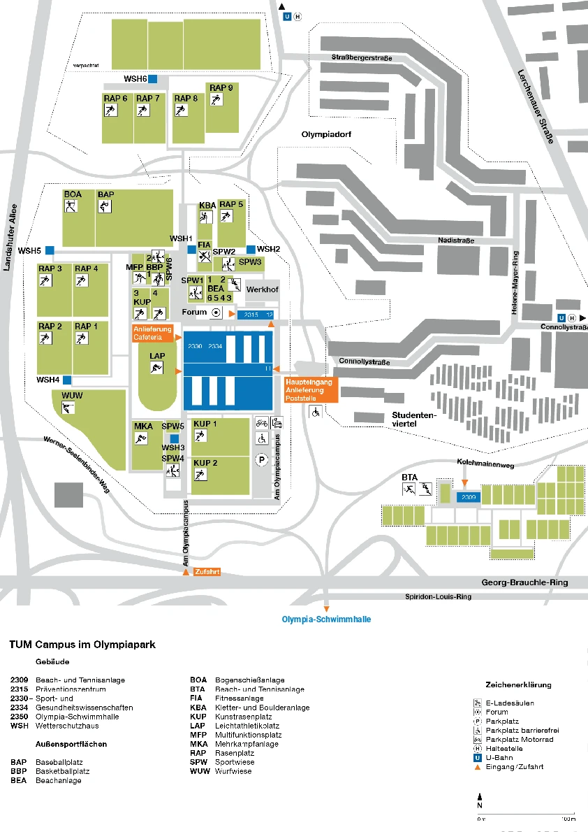 Mit der U-Bahn Linie U2 Richtung „Feldmoching“ fahren. Am Scheidplatz (gleicher Bahnsteig) umsteigen in die U3 und zur Haltestelle „Olympiazentrum“ fahren. Vom U-Bahnhof Olympiazentrum in Fahrtrichtung Connollystraße gehen, auf der oberen Ebene der Connollystraße (s. Lageplan) bis zum TUM Campus im Olympiapark Fußweg ca. 10 Minuten. Busfahrer Mit dem Bus 173 und N42 bis zur Haltestelle Olympiazentrum. Vom Bahnhof aus in Richtung Connollystraße gehen, dann auf der oberen Ebene der Connollystraße (s. Lageplan) bis zum TUM Campus im Olympiapark in ca. 10 Minuten.